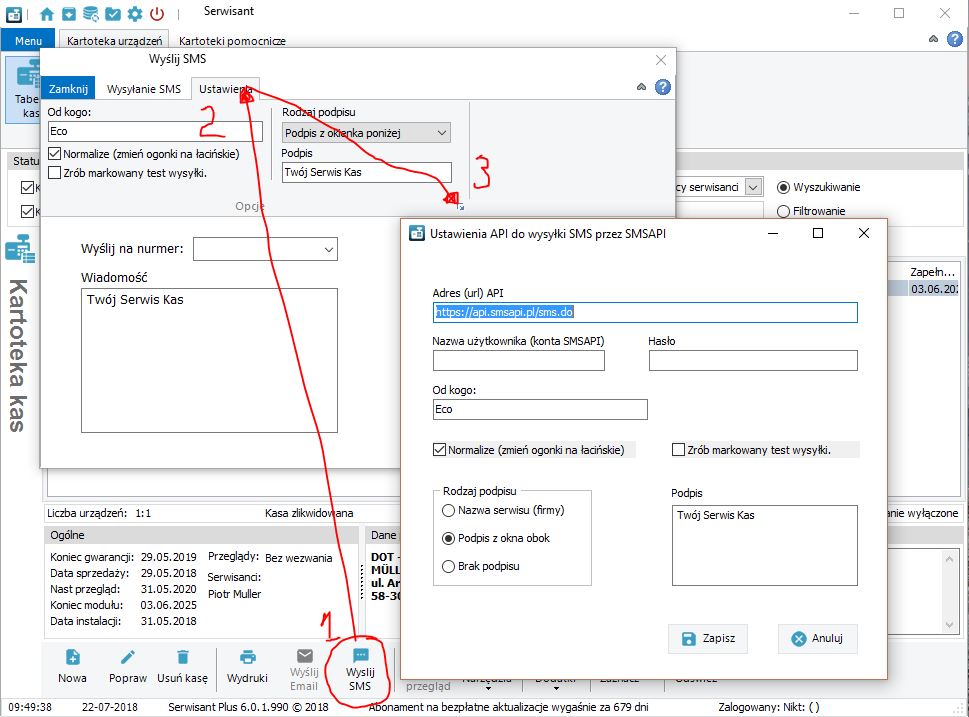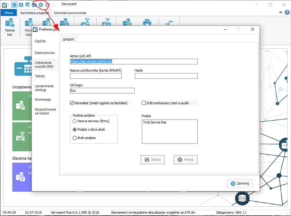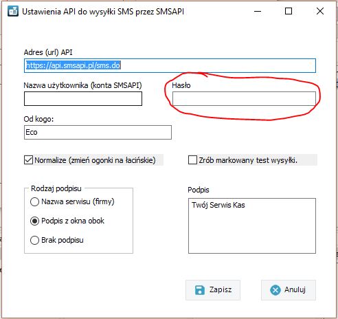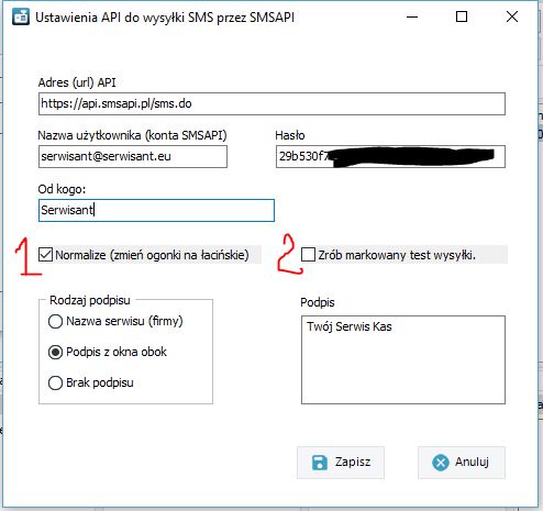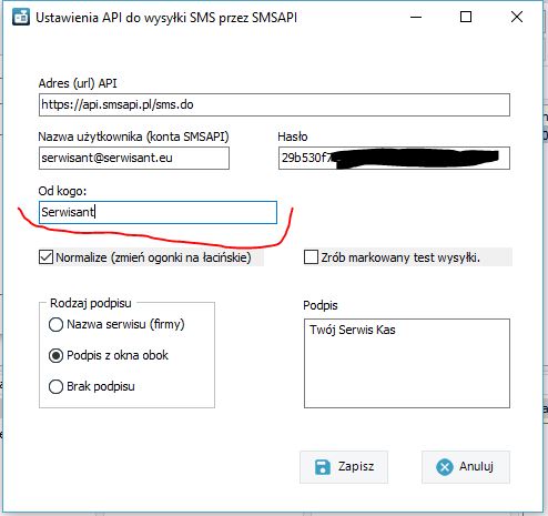 Konfiguracja Serwisanta do wysyłania sms'ów za pomocą API SMSAPI