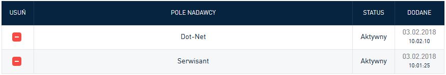 4. Czekamy aż portal zatwierdzi i aktywuje nam nazwę. Nowa nazwa nadawcy pojawi się na liście ze statusem "Aktywny".